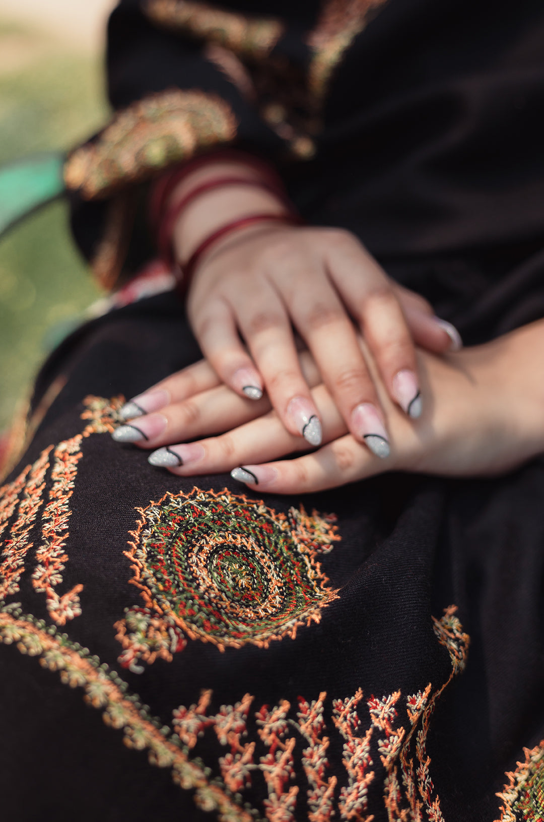 Crafted from 100% pure Pashmina, this black stole is elevated with vibrant yellow, orange, and green hand embroidery—a striking fusion of tradition and color. Light, soft, and luxurious, it’s perfect for festive occasions or adding flair to everyday wear.