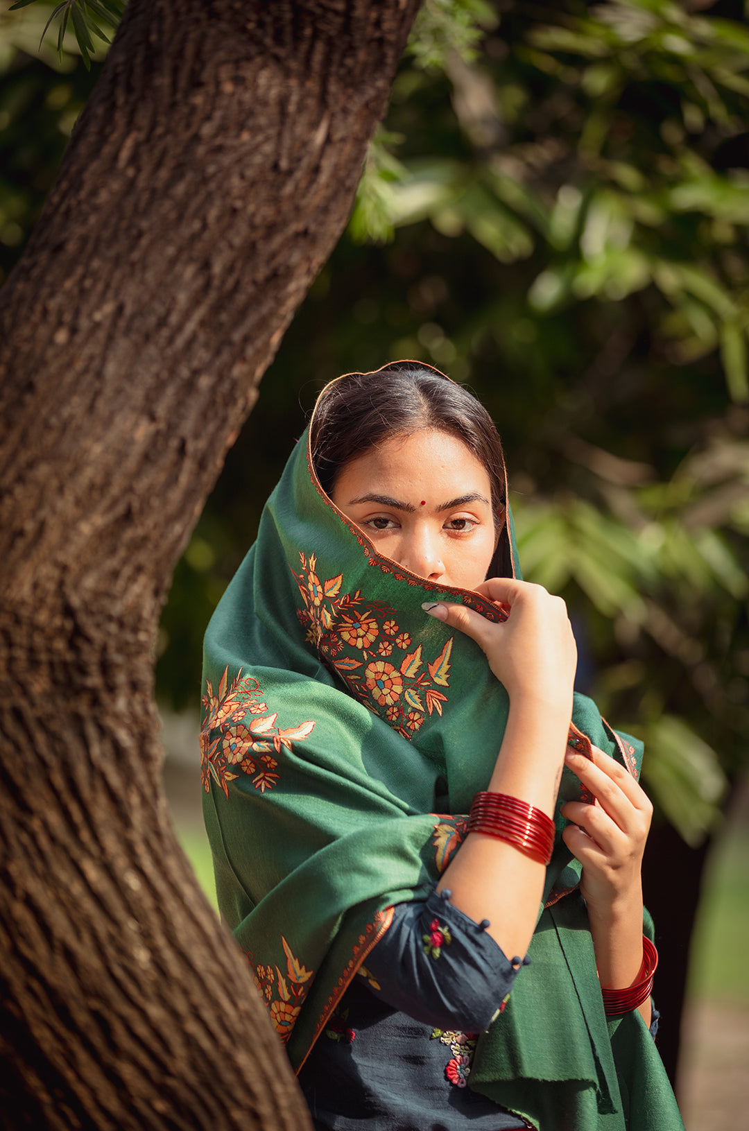 Elegant and earthy, this forest green pure Pashmina stole is adorned with delicate floral motifs, bringing nature-inspired charm to a rich, handwoven base. Crafted in Kashmir, it’s a graceful blend of tradition, softness, and everyday luxury.
