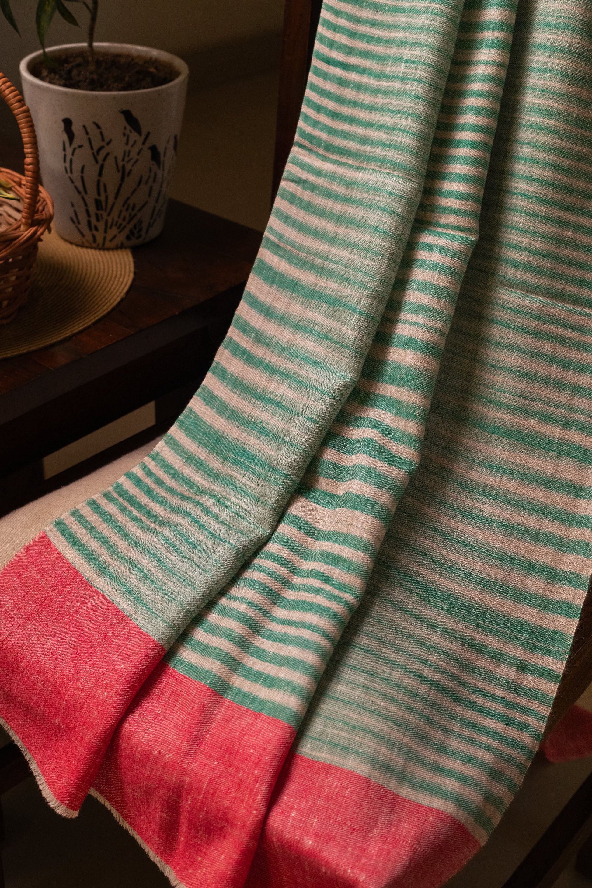 Our Green and Pink Stripes Pashmina Stole is a perfect blend of tradition and modern charm. Made from pure Pashmina wool, its soft, lightweight feel offers unmatched warmth and comfort. The delicate handwoven stripes add a touch of vibrance, making it a versatile piece for any occasion.