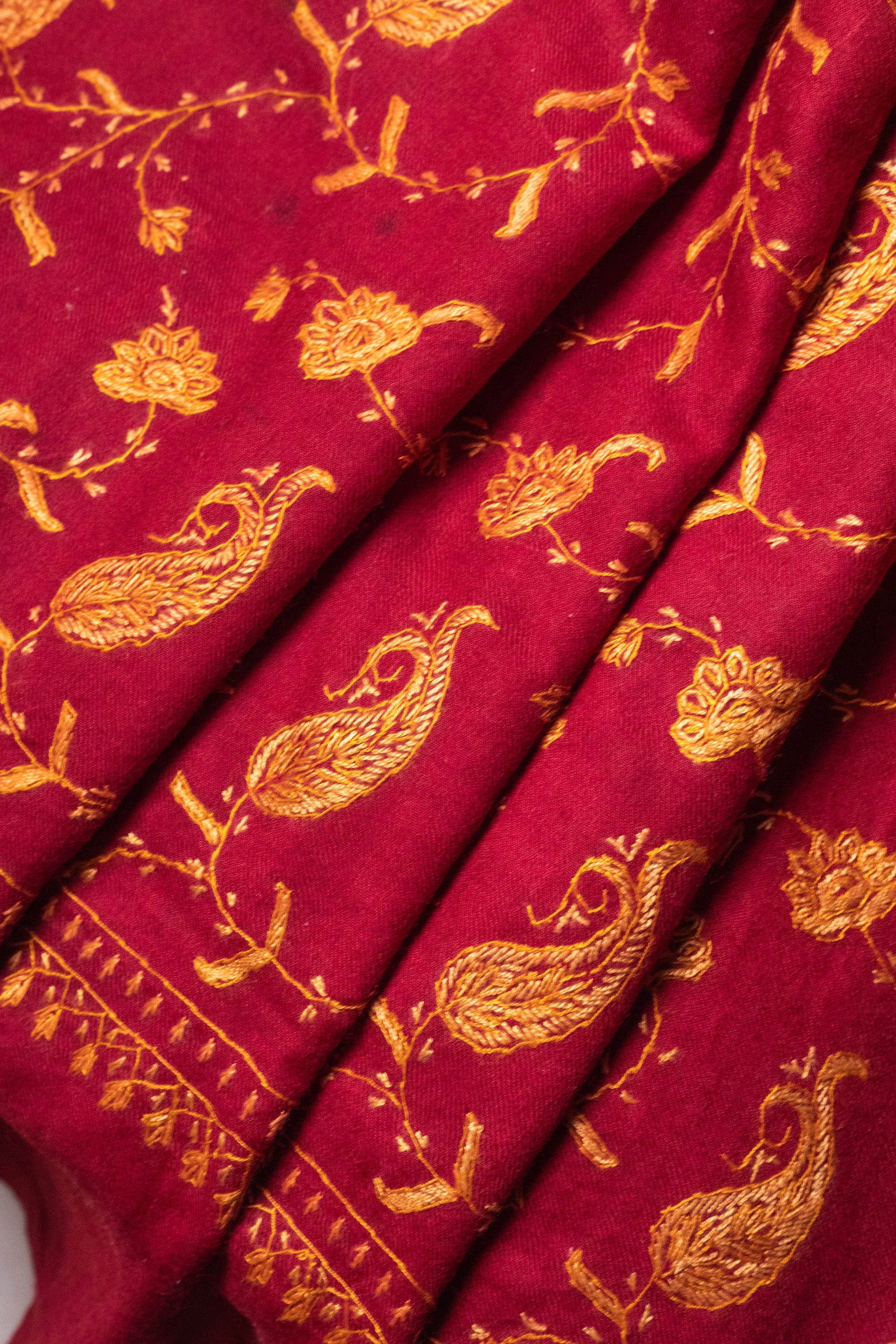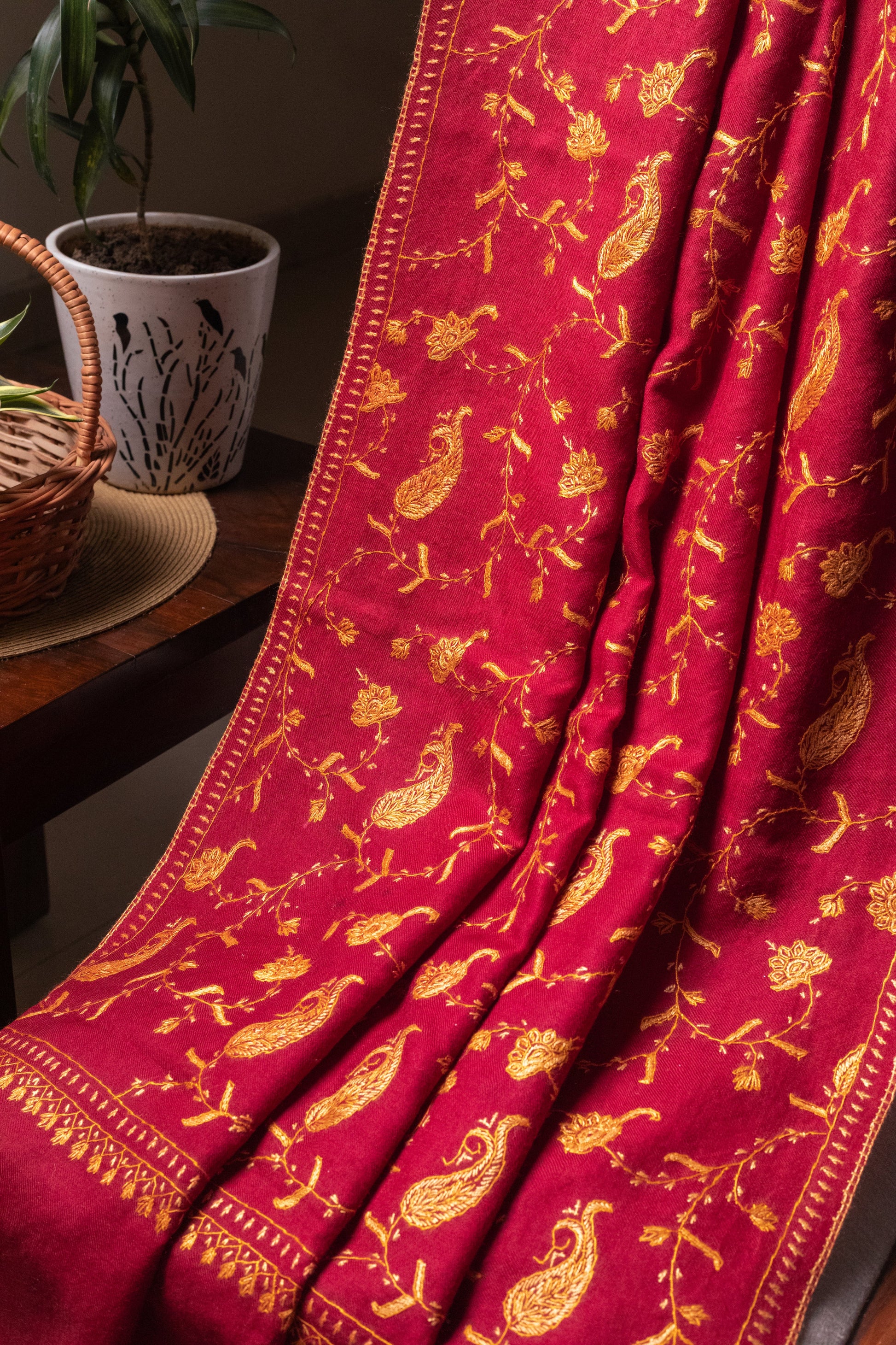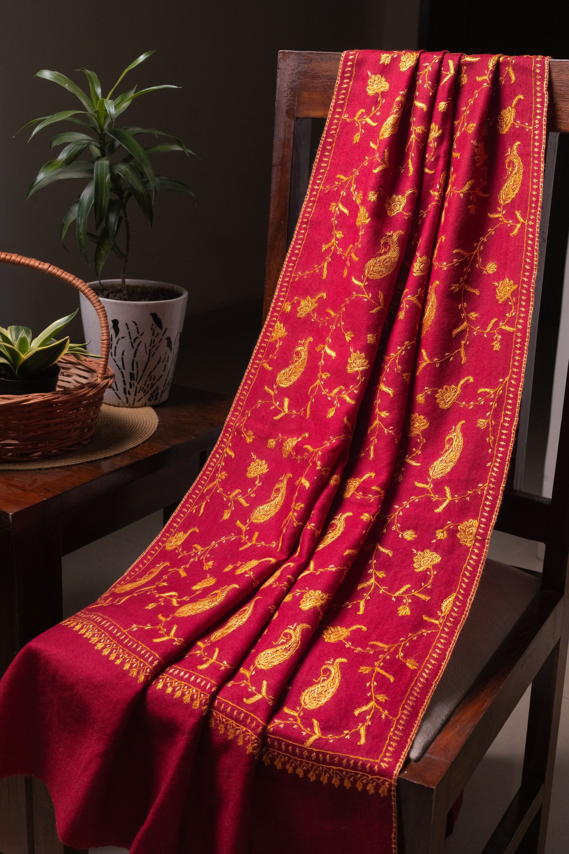 Maroon Jaal Semi Pasmina Stole with Sozni Embroidery