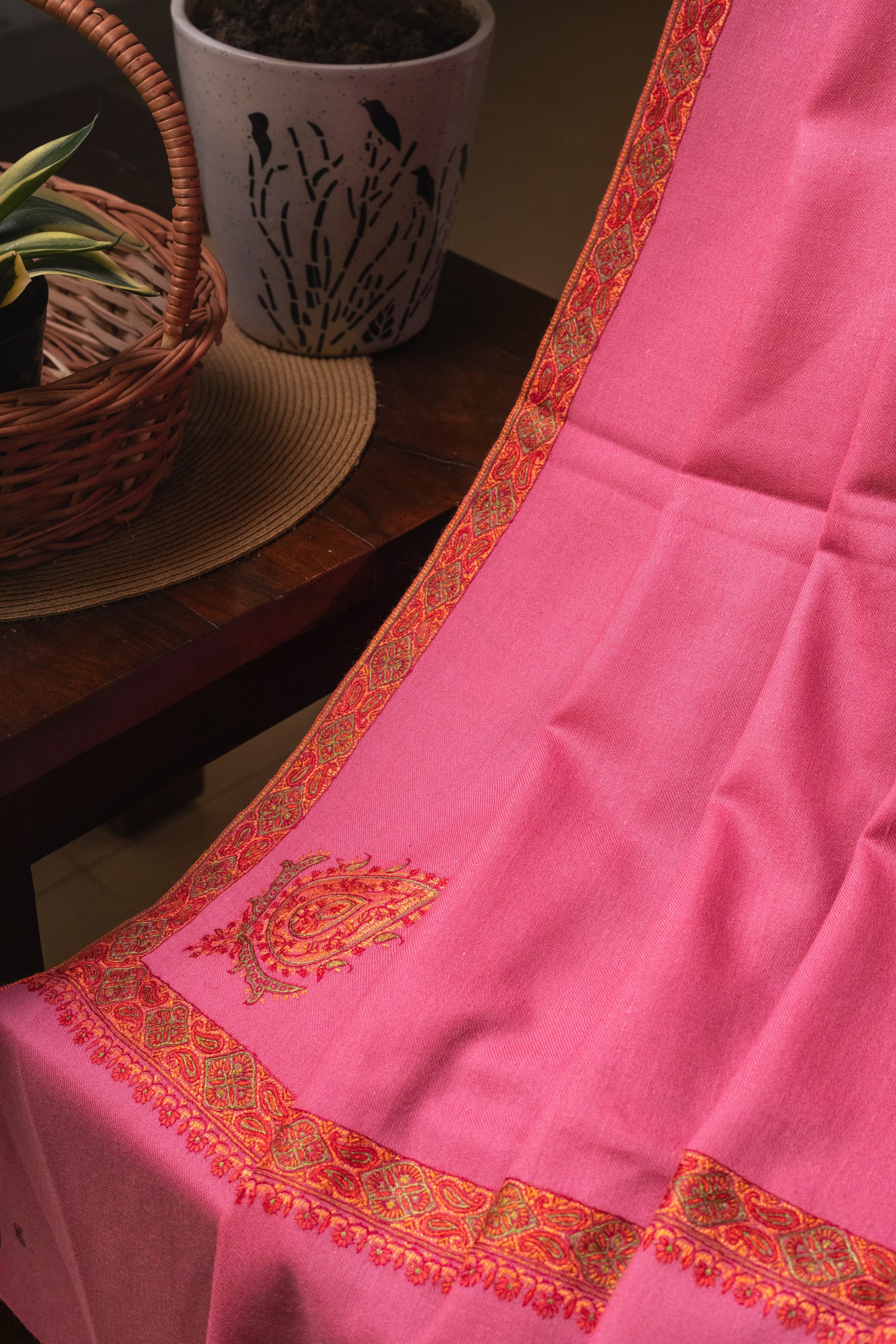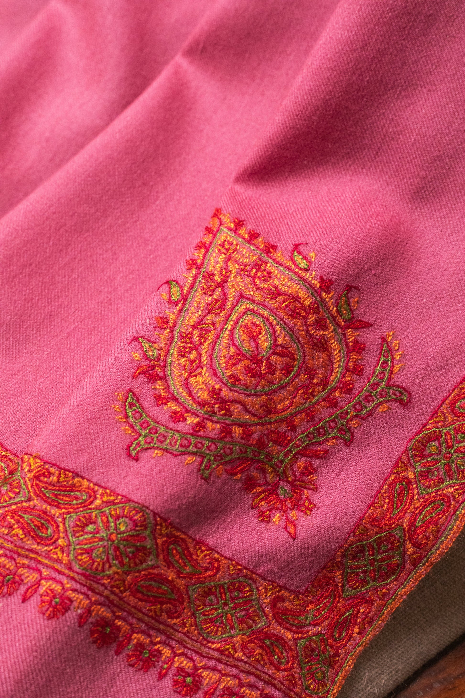 Mauve Pink Pashmina shawl with Sozni Embroidery and Badami Motif